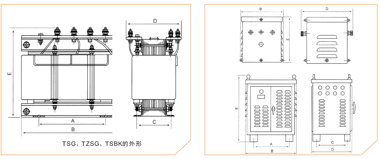 7.產(chǎn)品按結(jié)構分為開啟式和防護式兩種,防護式是采用鋼板加工成箱殼,變壓器在箱殼內(nèi)部,箱殼外有進出線孔,以便安裝電源線路,并采用風機散熱。必要時可按用戶要求增加電壓表,指示燈等。