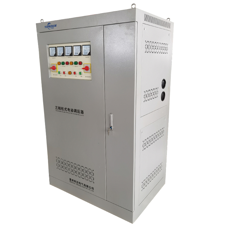 通過改變電刷與柱狀繞組磨光表面的接觸位位置,以改變一、二次繞組的匝數比,最終達到調主目的的調壓器稱柱式調壓器。柱式電動調壓器為大型接觸式電動調壓器,是感應式調壓器的換用產品。外觀、重量、體積、效率、波形、操作、按裝維護都優于相同功率的感應調壓器。適用于工礦電力、醫院、國防、科研等部門作連續可調型的試驗電源。