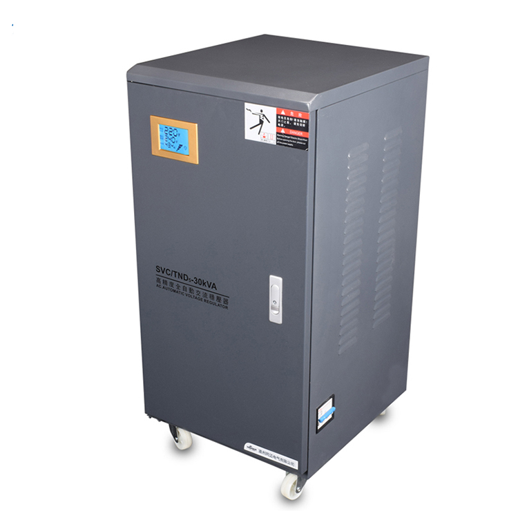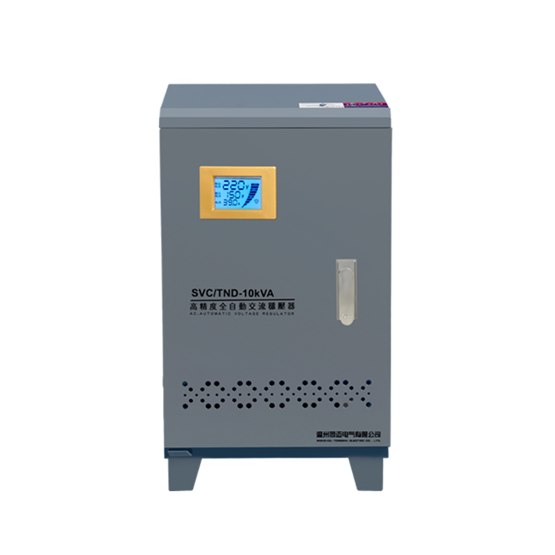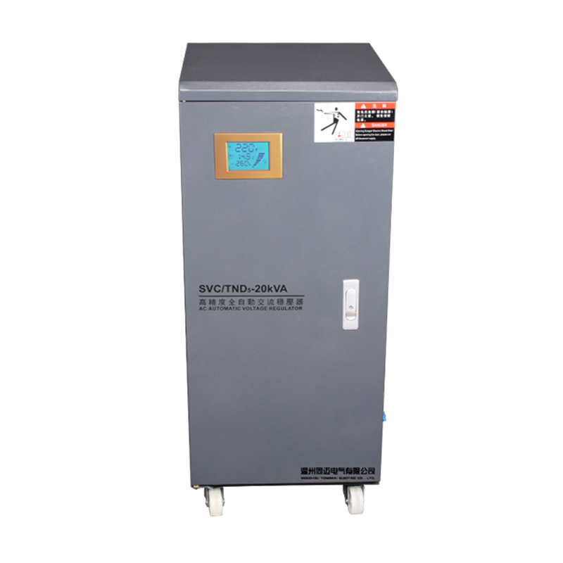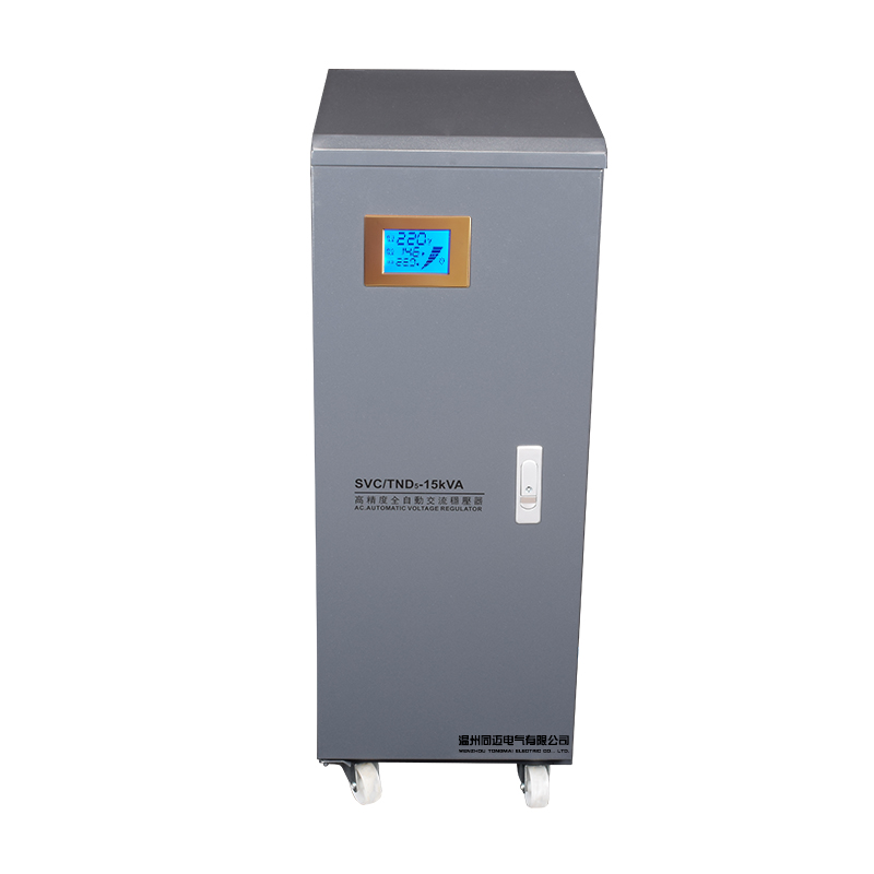TND5系列單相穩壓器的工作原理基于電壓監測和自動調節機制。當電網電壓不穩定或負載變化時,穩壓器內部的自動采樣控制電路會發出信號,并驅動相應的調節機構(如伺服電機),調整自耦調壓器碳刷的位置或改變線圈匝數比,從而使輸出電壓調整到額定值并達到穩定狀態。這種自動調節過程能夠確保輸出電壓的穩定性和可靠性。